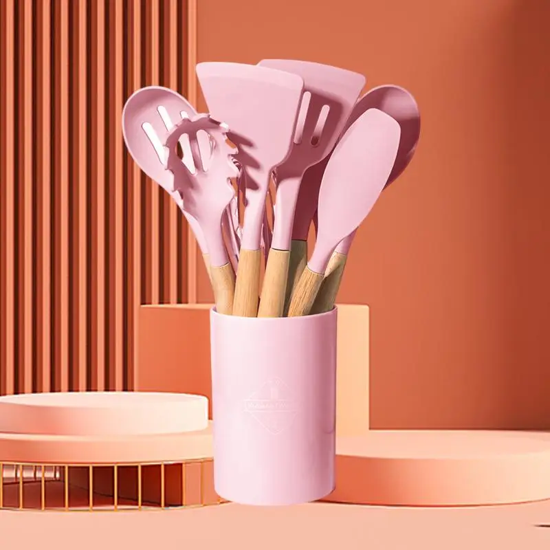 qwCZZsZrHere you can buy Upgrade Your Kitchen With This 11 Piece Non Stick Silicone Cooking Set With Wooden Handles Perfect Kitchenware For All Your C with free delivery to your post office.