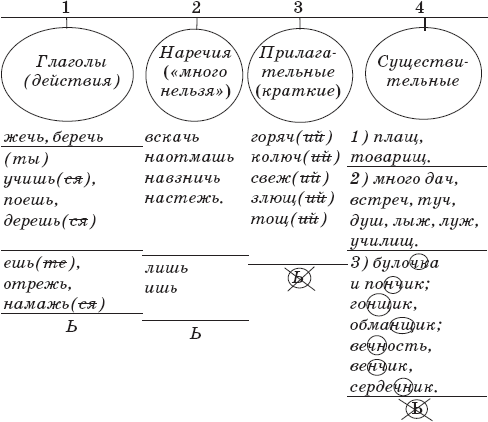 Употребление мягкого знака после шипящих таблица