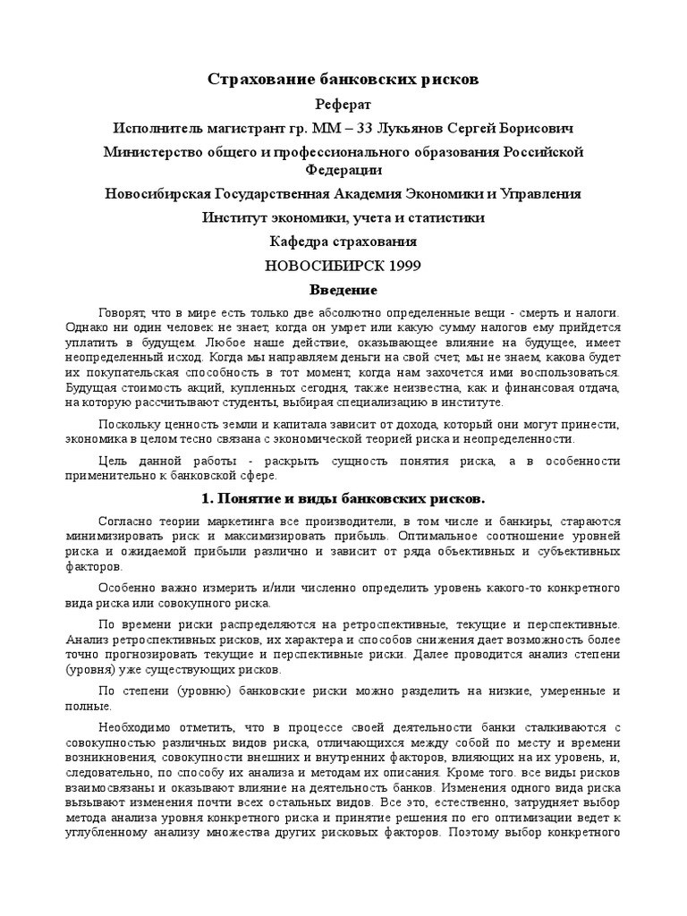 УПРАВЛЕНИЕ НА РИСКА БАНКОВ РИСК | Реферат от 'Икономика . . .