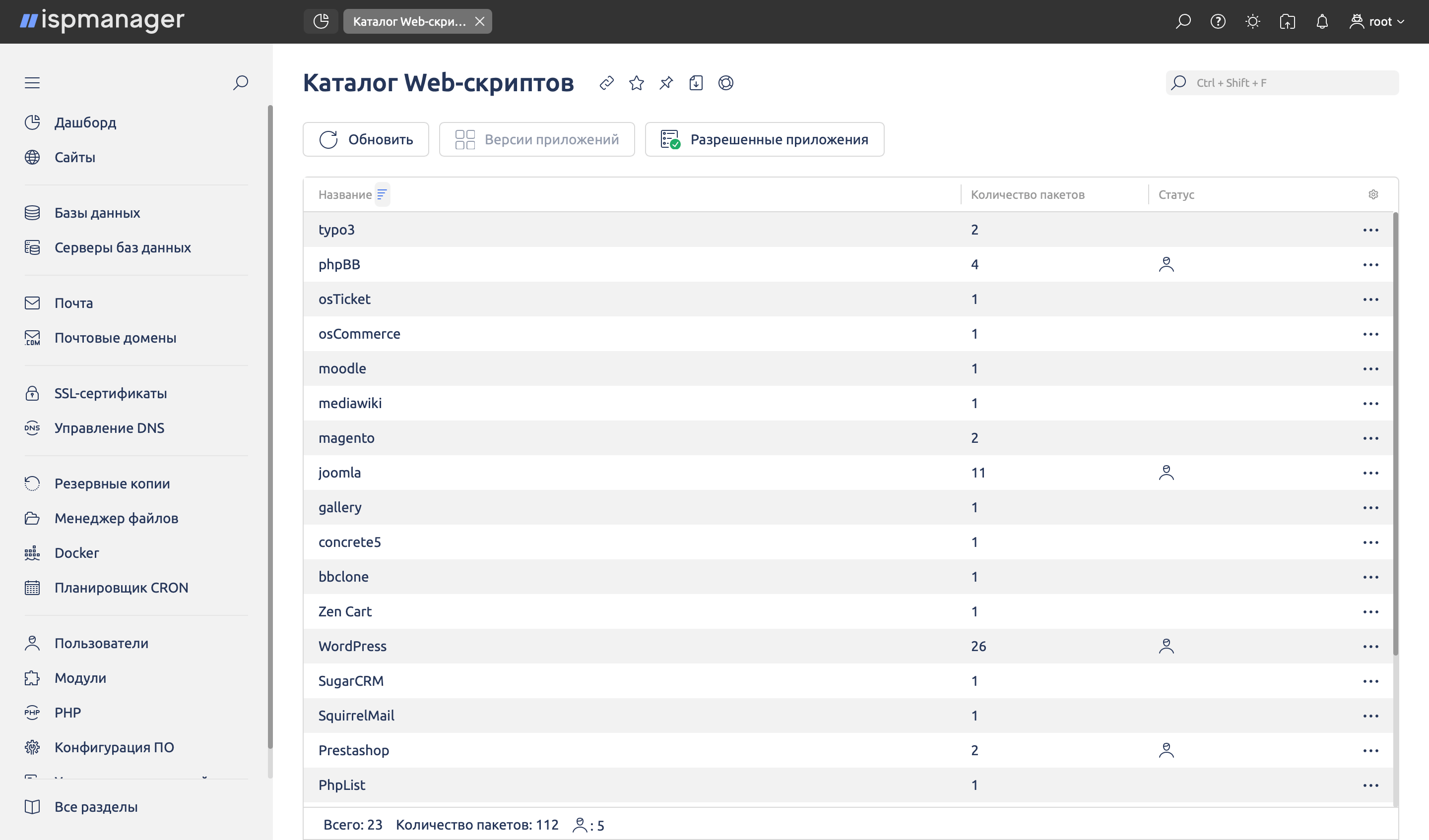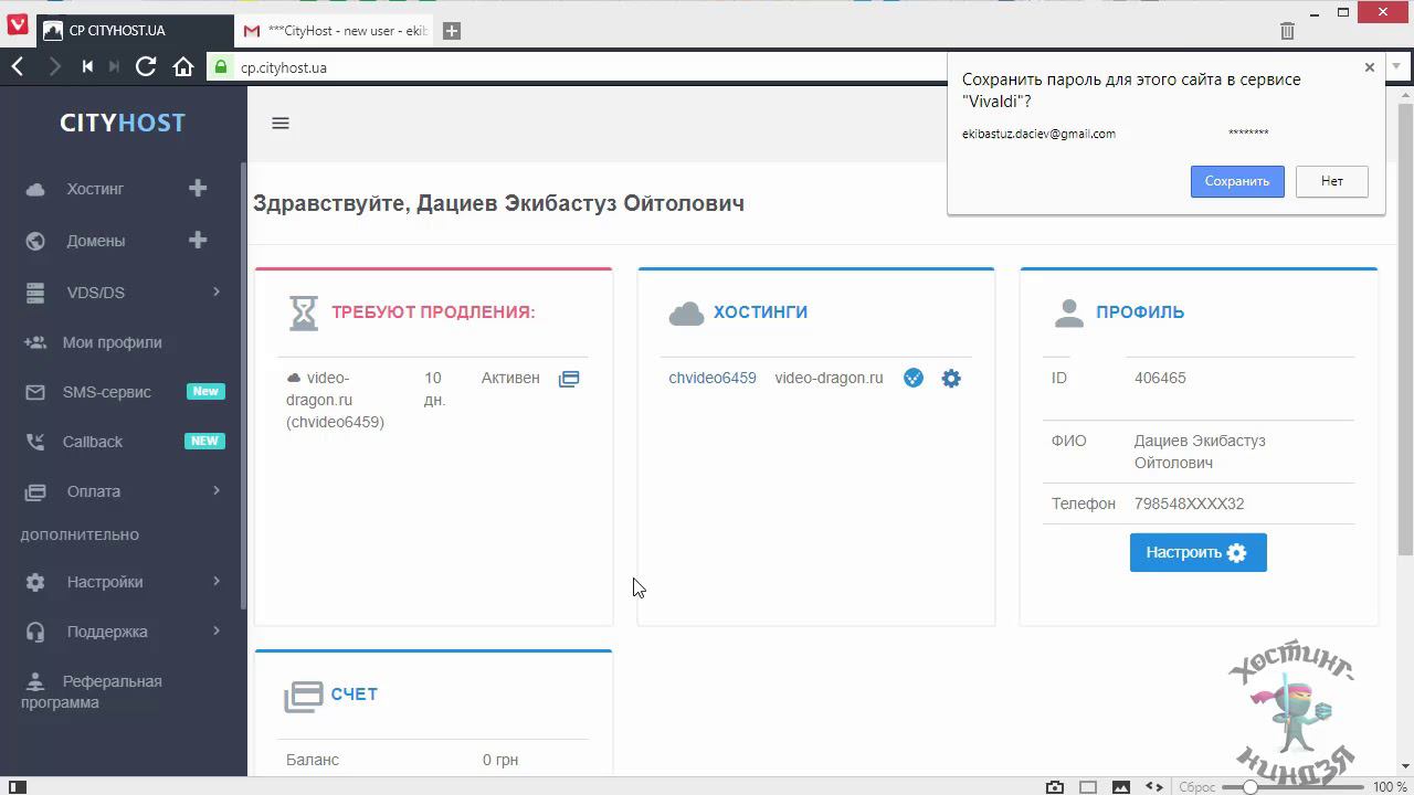 Управление хостингом сайта