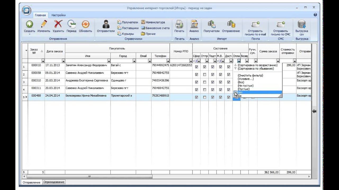 Управление интернет торговлей