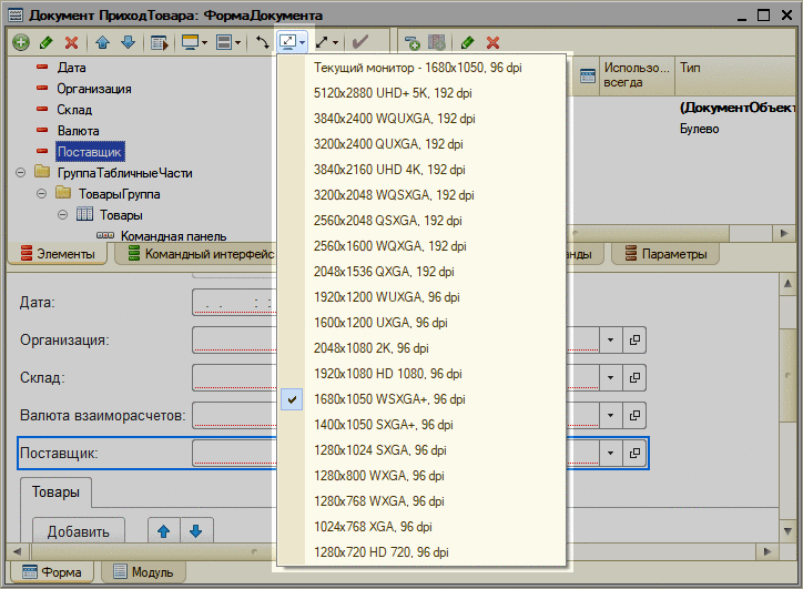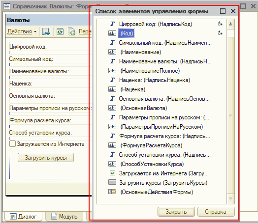 Управляемые формы список выбора программно