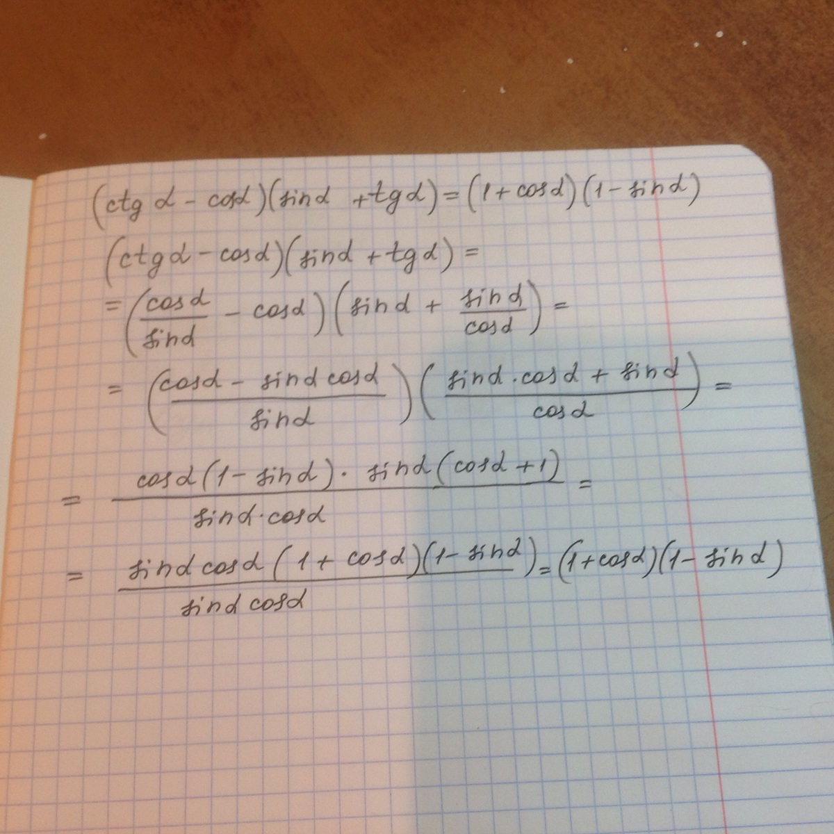 Упростить 1 sina cosa ctga