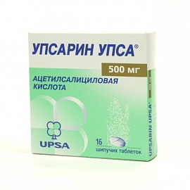 УПСАРИН УПСА 500 мг . (UPSARIN UPSA 500 mg) Загальна характеристика: міжнародна та хімічна назва: acetylsalicylic acid; 2- (ацетокси) бензойна кислота; основні фізико-хімічні властивості: круглі білі таблетки зі скошеними краямита насічкою для поділу, швидко розчиняються у воді з шипучою . . .