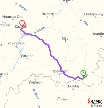 Уральск казань расстояние