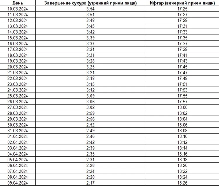 Ураза 2025 календарь со временем