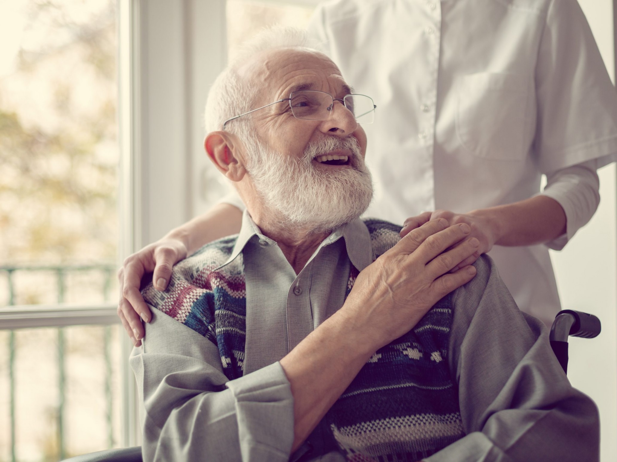 Una donna anziana insieme al marito