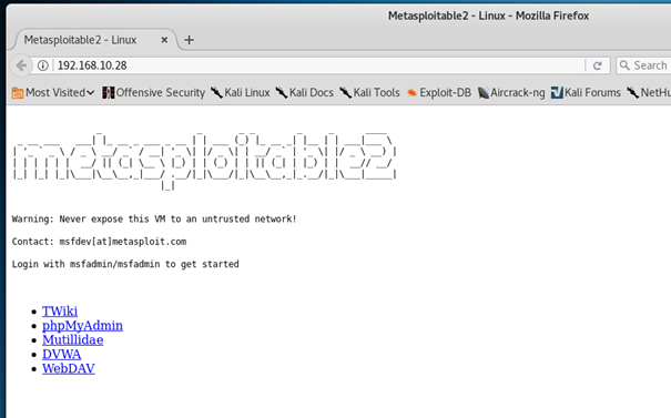 Теперь с помощью браузера переходим на сайт нашей жертвы или в случае работы с Metasploitble2 на IP адрес виртуальной машины.