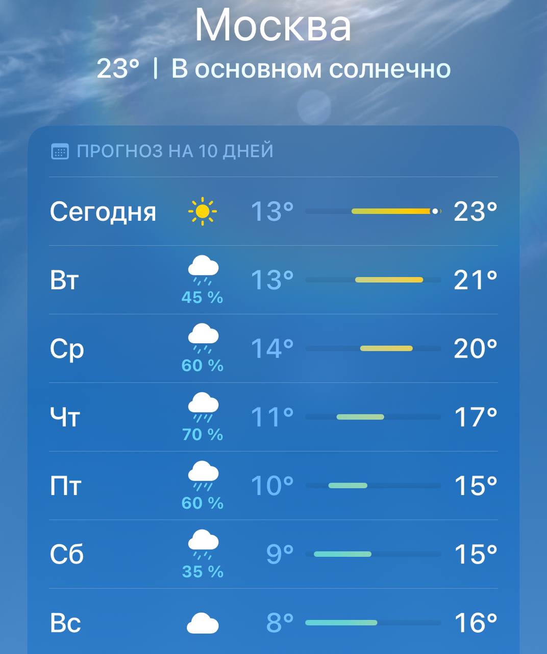 Уровень погоды в москве