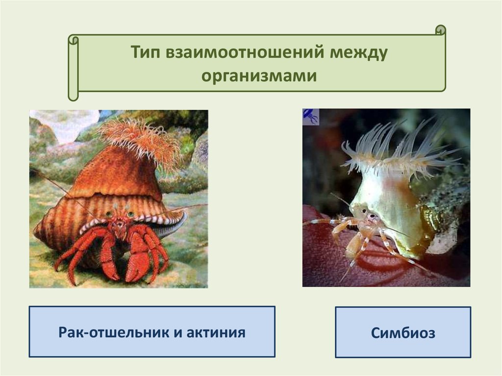 Уровень пример симбиоз рака отшельника и актинии