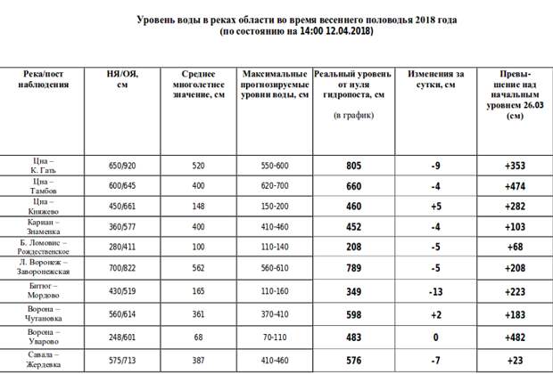 Уровень реки каряка