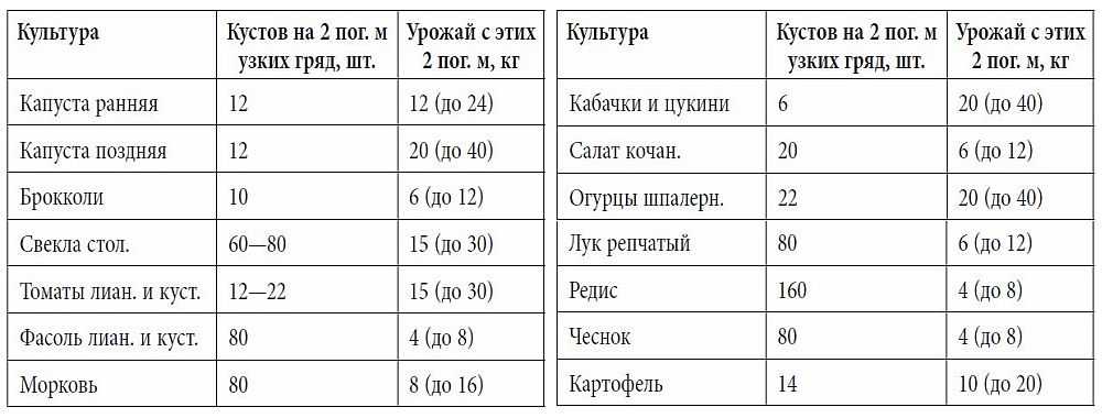 Урожайность овощей таблица 105 фото