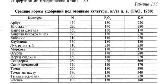 Урожайность овощей таблица