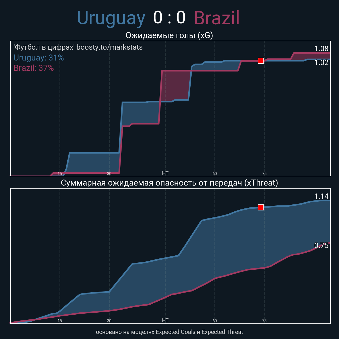 xThreat без учета угловых: 0.74 - 0.66