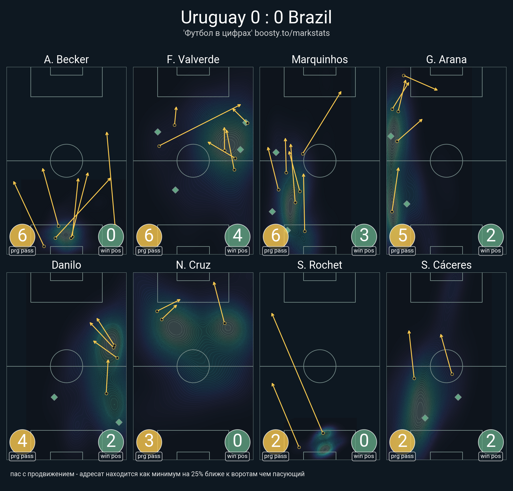 13 успешных передач из 25 попыток (1 под удар, 2 с продвижением, 1 на трети соперника)