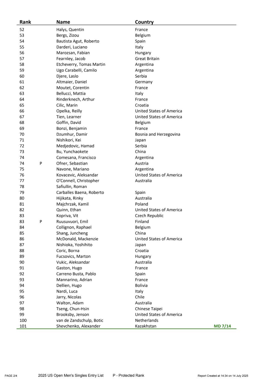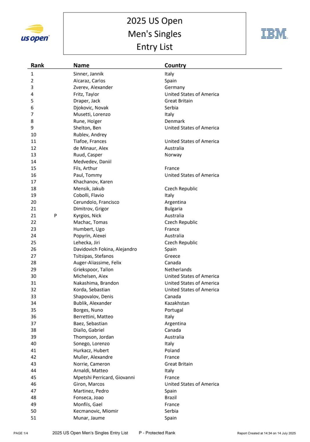 Us open 2025 сетка мужчины и