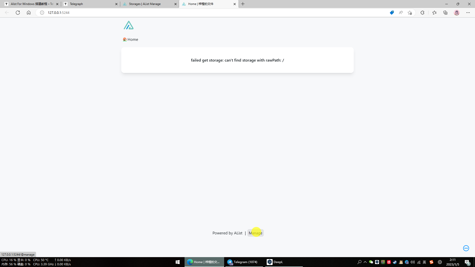 After writing down (and copying) the password, go back to your browser, type 127.0.0.1:5244 in the address bar and enter