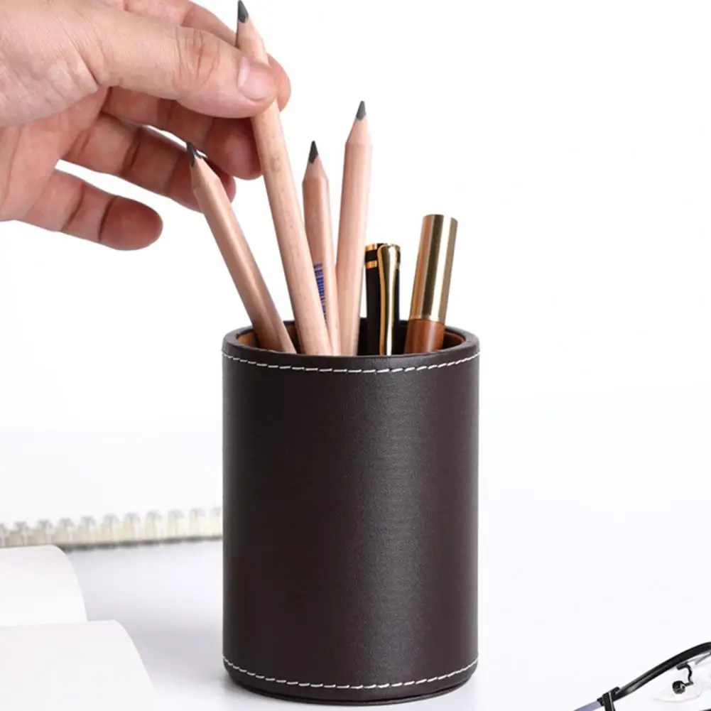 Useful Faux Leather Pen Container Wear Resistant All-Purpose Makeup Brush Pen Ruler Pencil Storage Jar Multipurpose - Купить с бесплатной доставкой