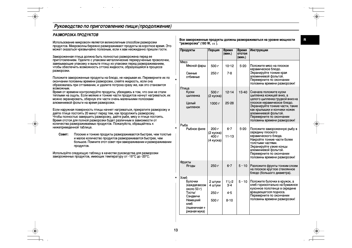 Ускоренная разморозка в микроволновке
