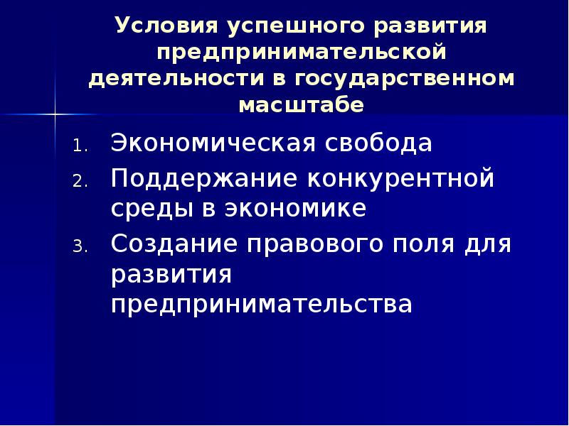 Условием развития предпринимательства является