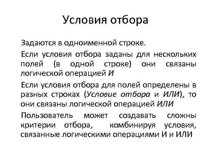 Условия отбора это