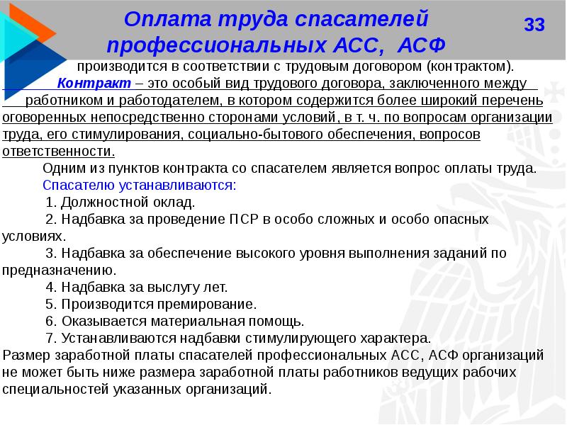 Условия труда спасателя