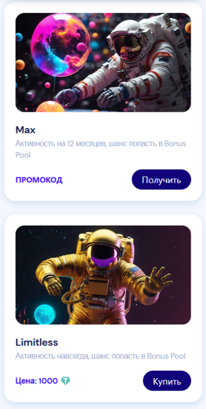 Чтобы воспользоваться всеми преимуществами SAIME, приобретите активность в разделе "Маркетплейс". Выбрав соответствующий пакет, нажмите на кнопку "Купить".