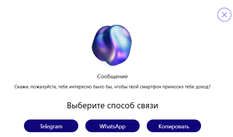 Нажмите на кнопку "Связаться" и выберите нужный способ отправки.