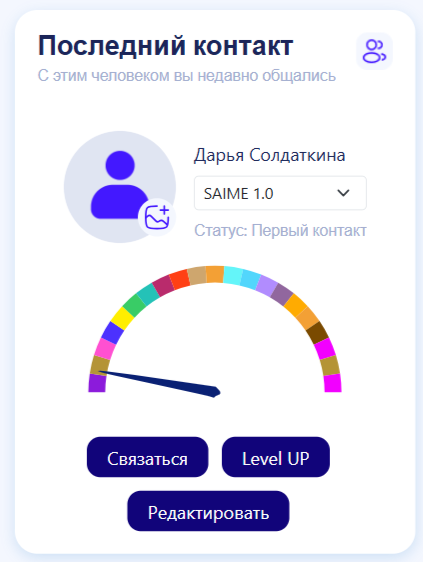 Вновь нажмите на кнопку "Связаться" и отправьте новый скрипт выбранному контакту и следуйте подсказкам SAIME.