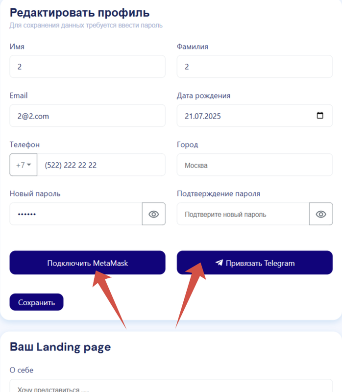 Заполните все поля формы раздела "Редактировать профиль". (Тут также можно изменить пароль)