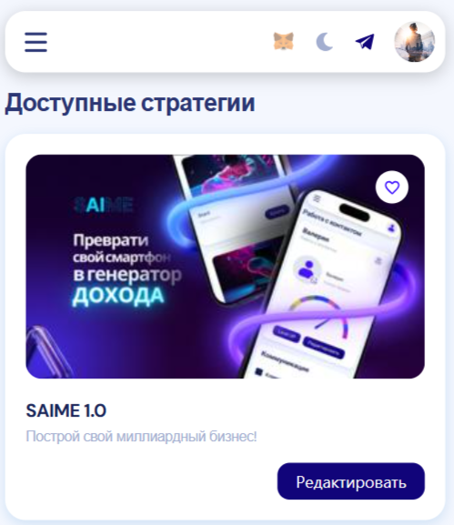 Перейдите в раздел "Стратегии" выберите стратегию SAIME и нажмите на кнопку "Редактировать".