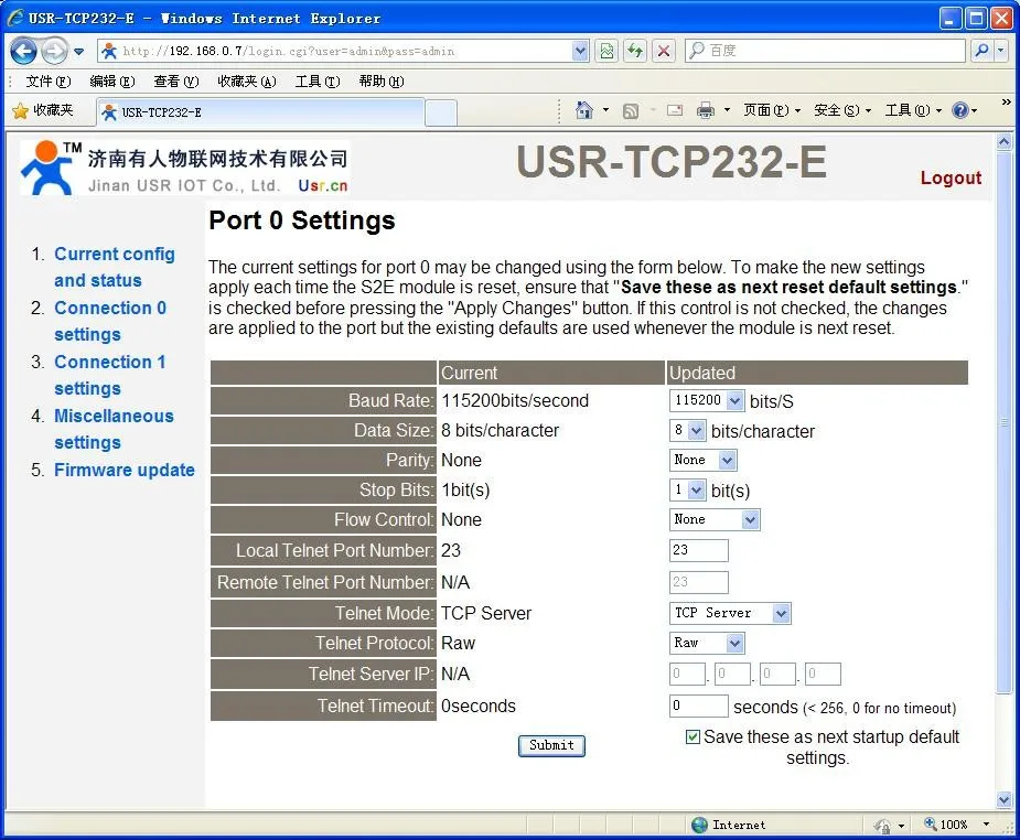 Usr tcp232 настройка