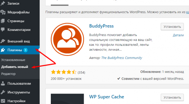 Установить новый плагин