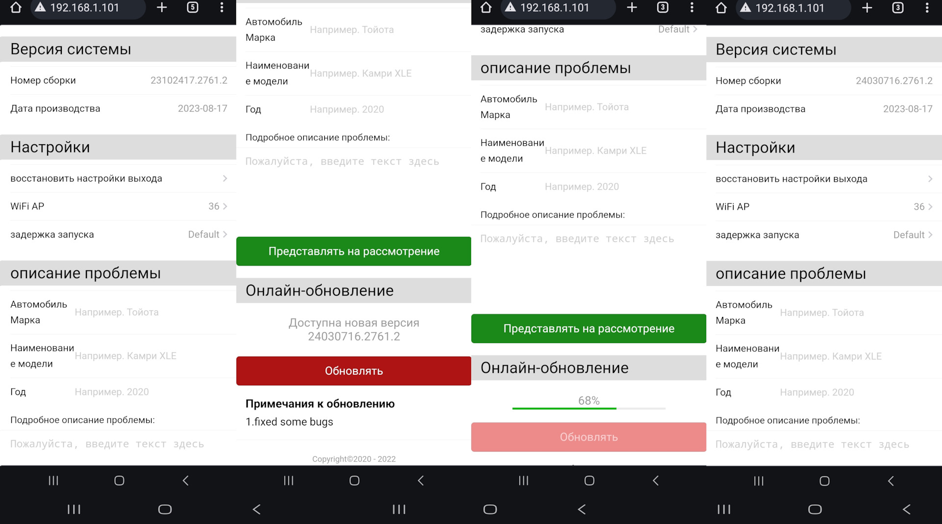 Установить обновление прошивки