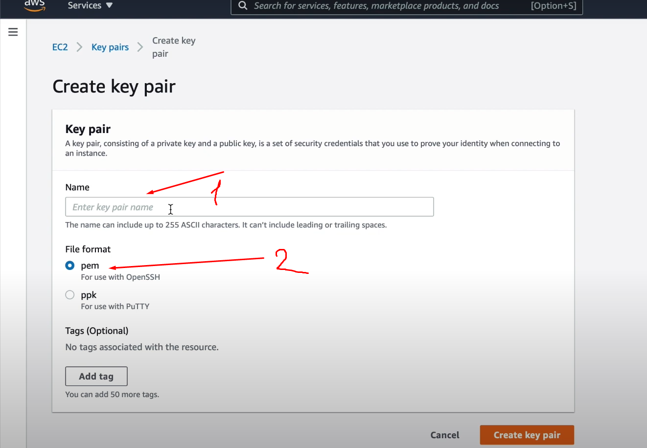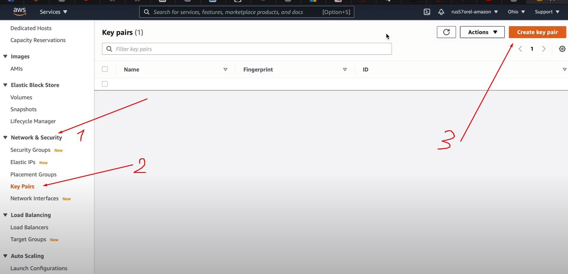Network & Security - Key pairs - Create key pair