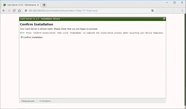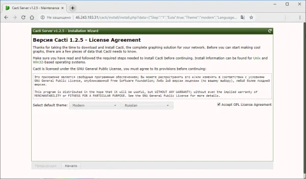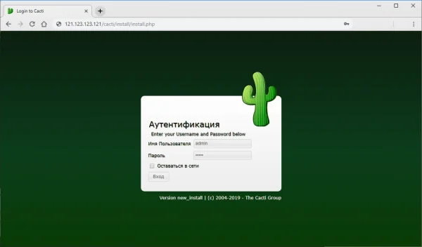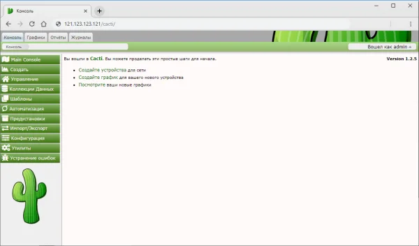 Подключение к веб-интерфейсу Cacti