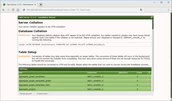 Создание базы данных Cacti