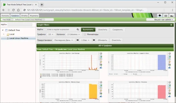Далее вы можете зайти в панель Cacti и приступать к мониторингу: