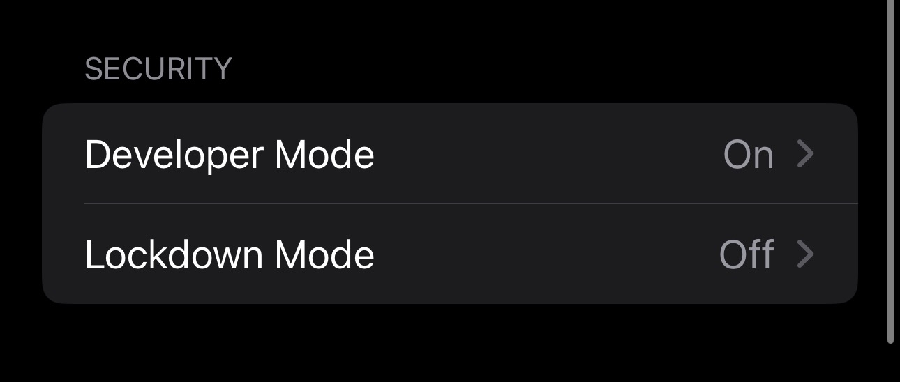 После этого если у вас iOS 16 и выше вам нужно включить режим разработчика. Он находится по пути Настройки -> Конфиденциальность и Безопасность, в самом низу будет пункт «Безопасность» и в нем «Режим Разработчика», переключаем тумблер, устройство перезагрузится и после перезагрузки телефон еще раз спросит точно ли стоит включать режим разработчика. Нажимаем «Включить». После этого можно проверить включен ли у нас этот режим, по пути описанному выше теперь должно быть написано «Вкл.»