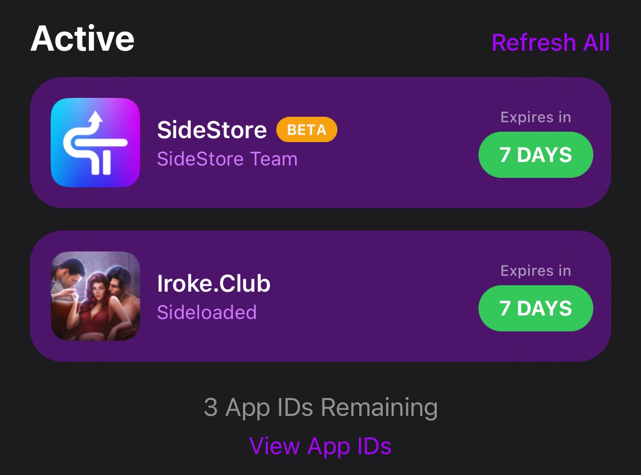 НЕ ЗАБЫВАЙТЕ, ЧТО ВАМ НУЖНО ВХОДИТЬ В ПРИЛОЖЕНИЕ SIDESTORE НЕ РЕЖЕ ЧЕМ РАЗ В НЕДЕЛЮ ЧТОБЫ ПЕРЕПОДПИСЫВАТЬ ПРИЛОЖЕНИЕ, ИНАЧЕ ОНО ПЕРЕСТАНЕТ РАБОТАТЬ.