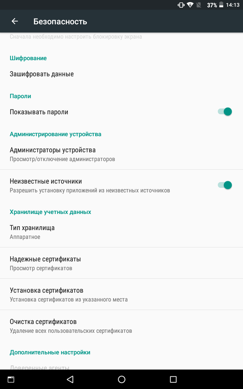 Потом идем в настройки - безопасность и разрешаем установку из неизвестных источников.