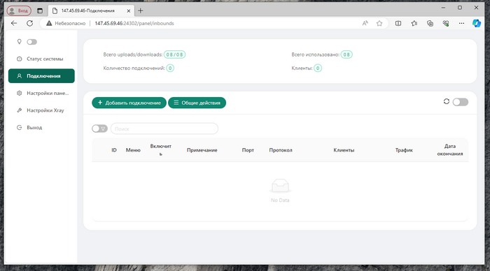 Переходим браузер и в адресной строке переходим по адресу: 147.45.69.46:24302/panel/, у вас же это IP-адрес вашего сервера, а port – номер вашего порта.