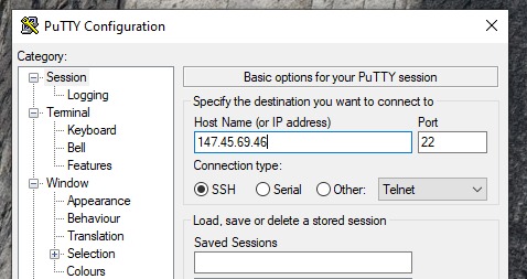 Копируем IP-адрес, открывает putty для соединения по SSH
