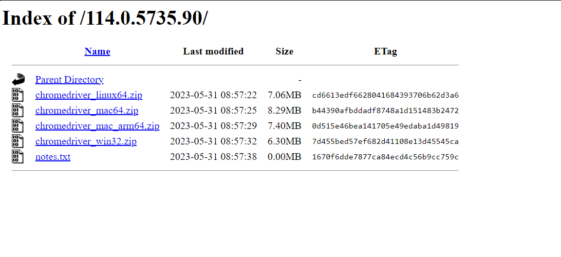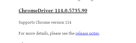 Заходим на сайт https://chromedriver.chromium.org/downloads и выбираем драйвер схожий с версией браузера 114.0.х