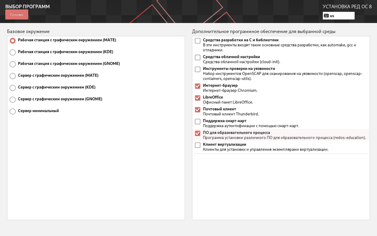 - Утилиты для установки и управления виртуальными машинами. Нужен, если планируешь использовать RED OS в роли «хоста» для других систем.