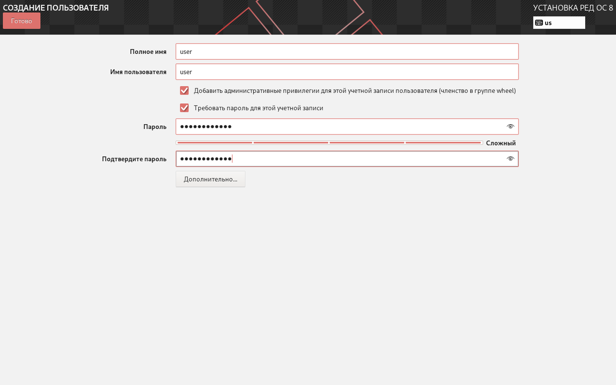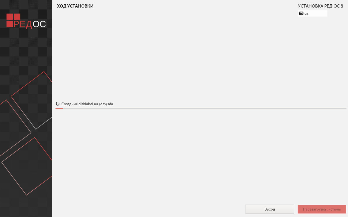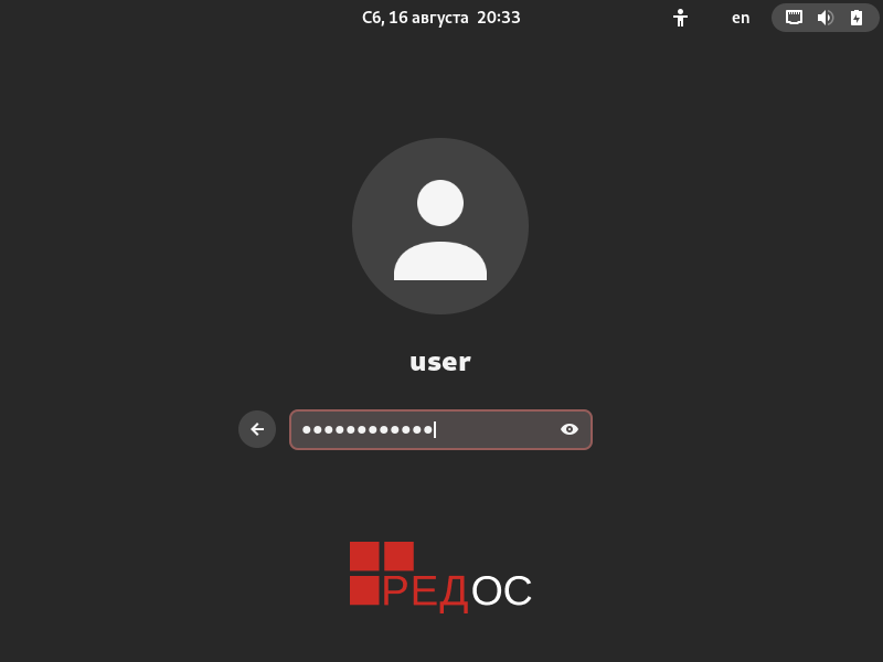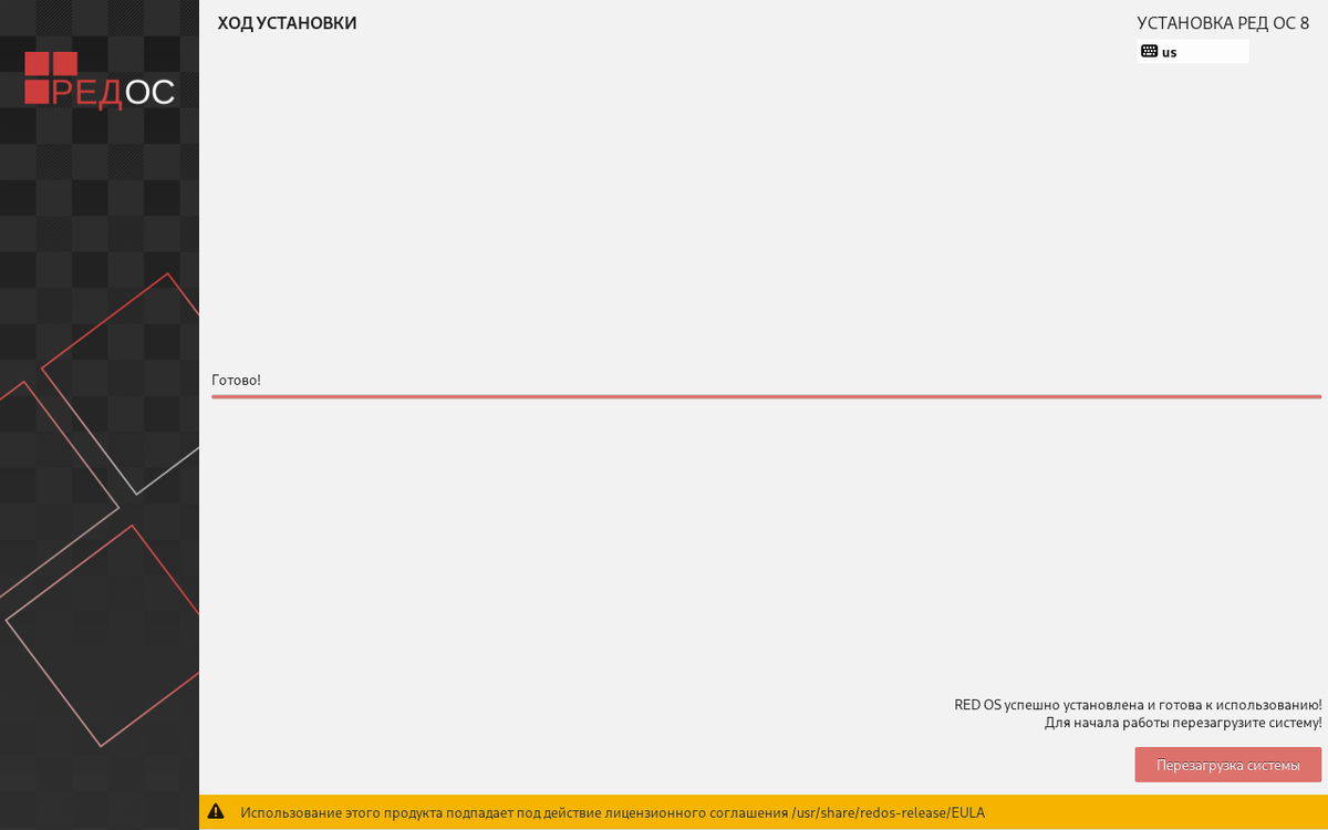- Перезагрузите компьютер и войдите в установленную RED OS.