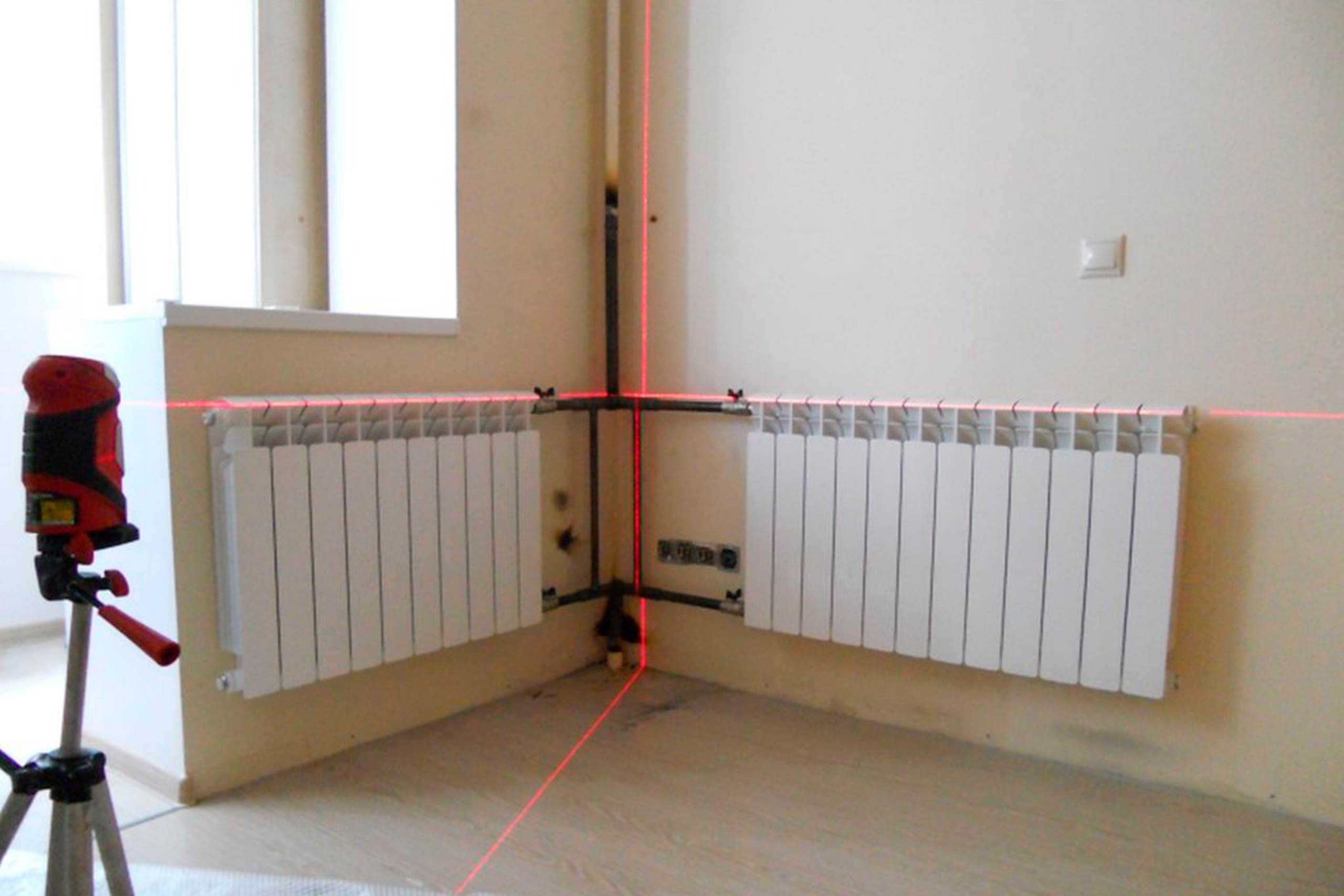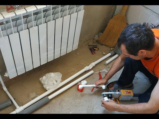 Установка радиаторов труб отопления
