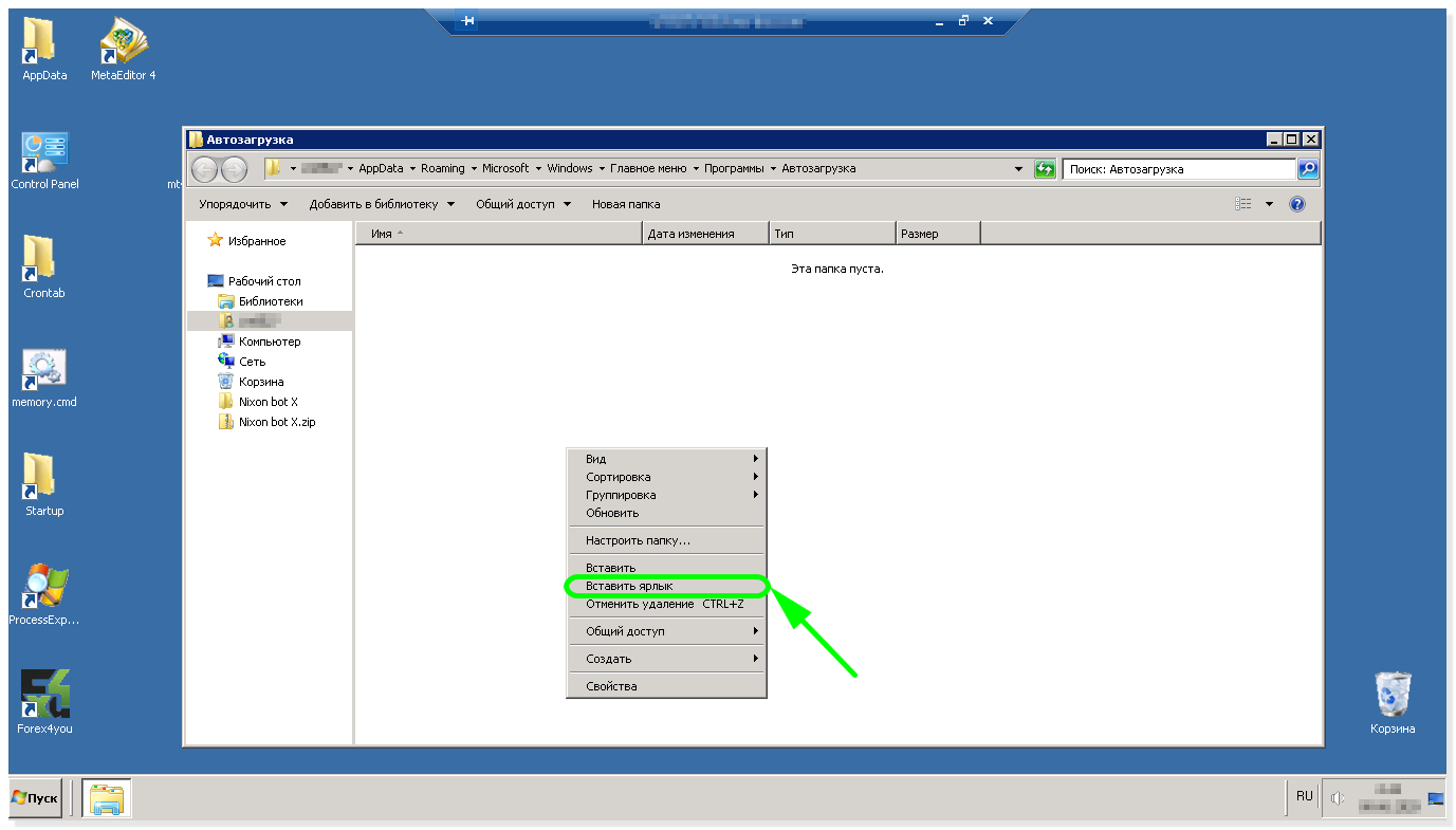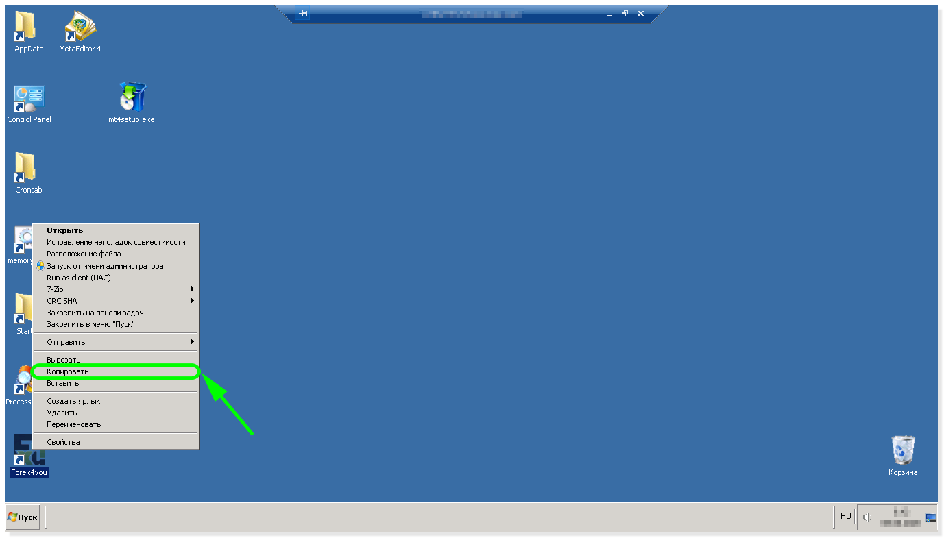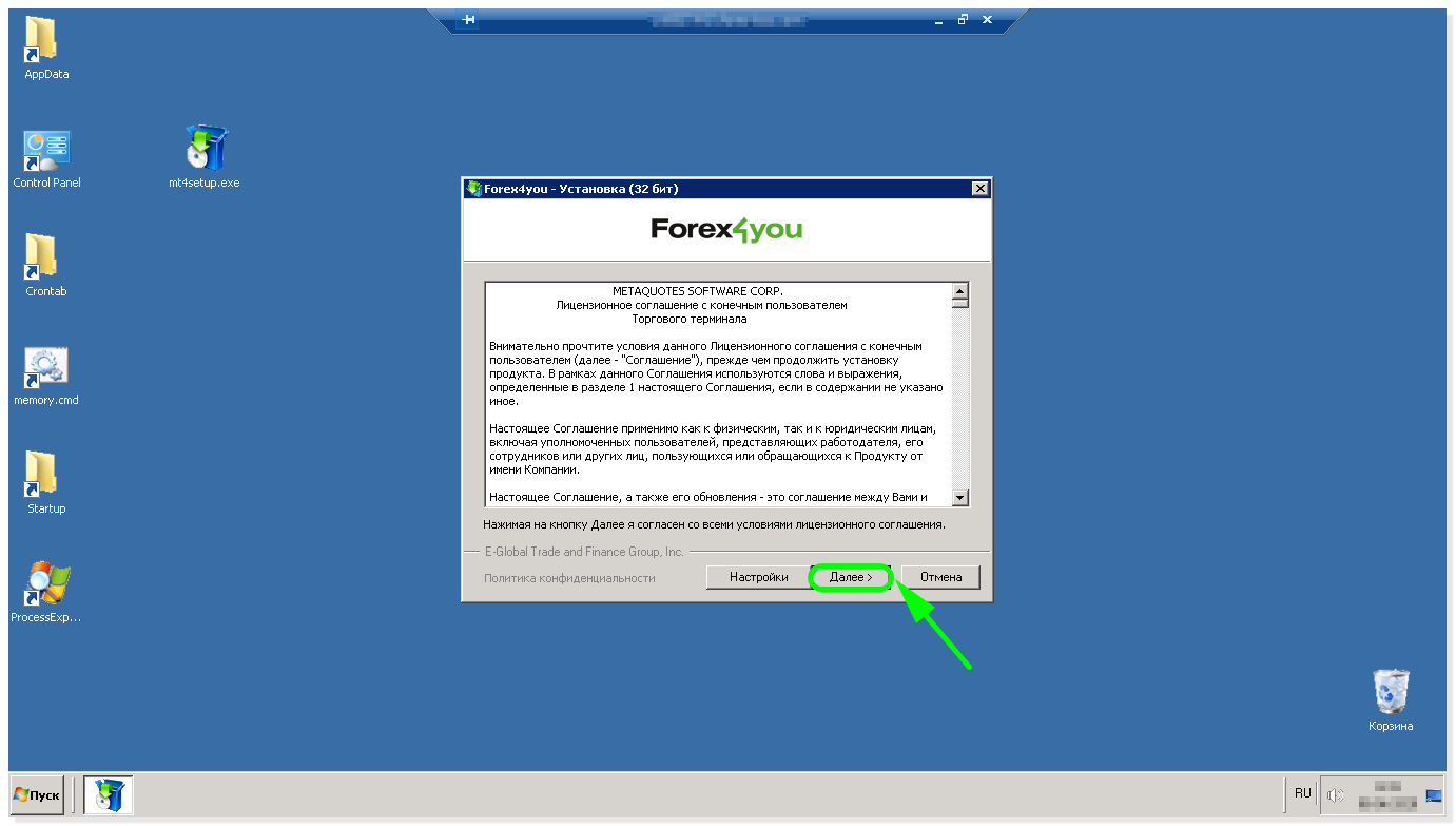 Рассмотрим пример установки МТ4 на удаленный рабочий стол для торговли через брокера Forex4you (для RoboForex всё аналогично)
