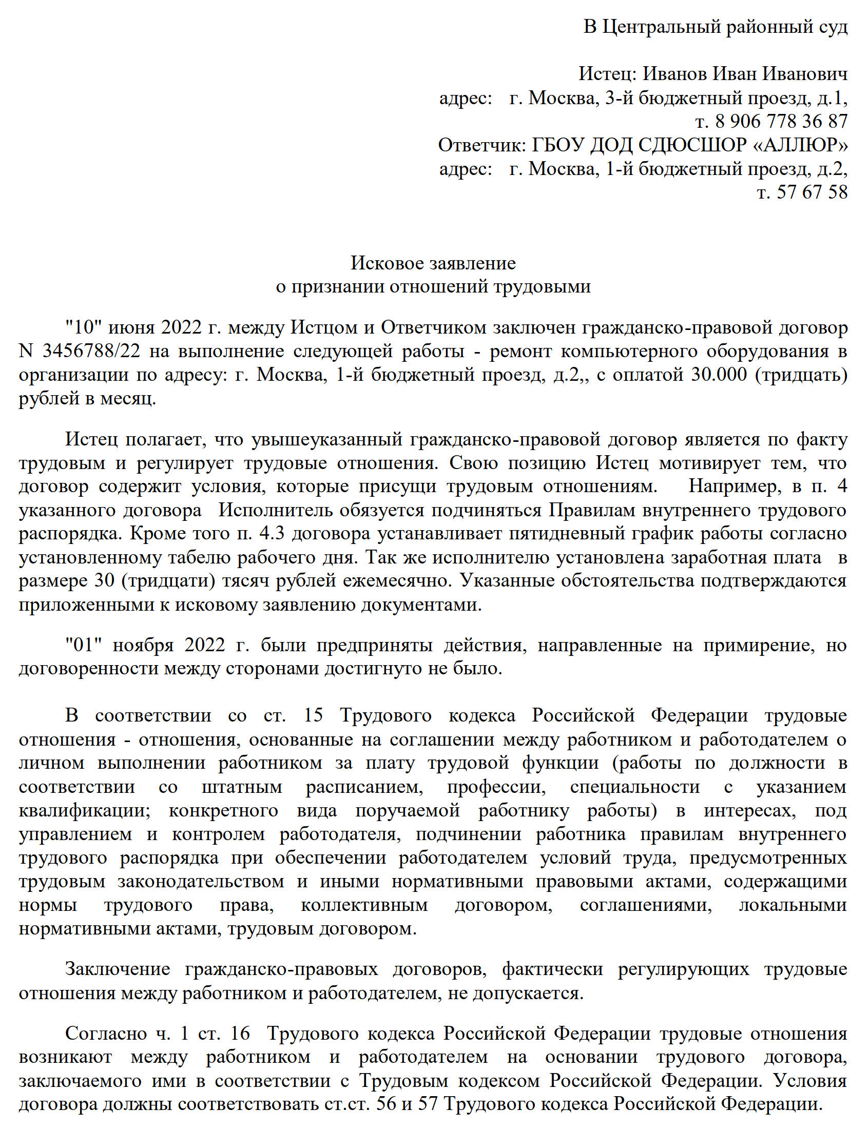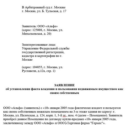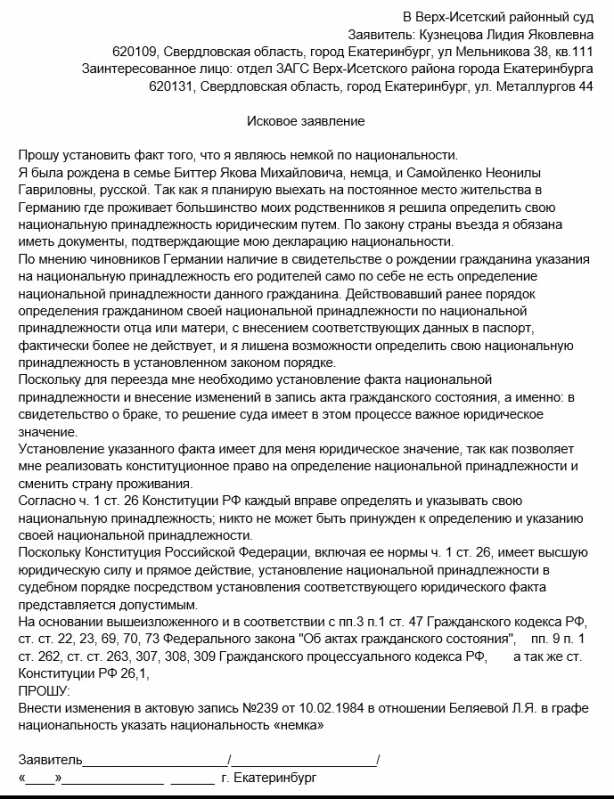 Установление факта имеющее юридическое значение образец