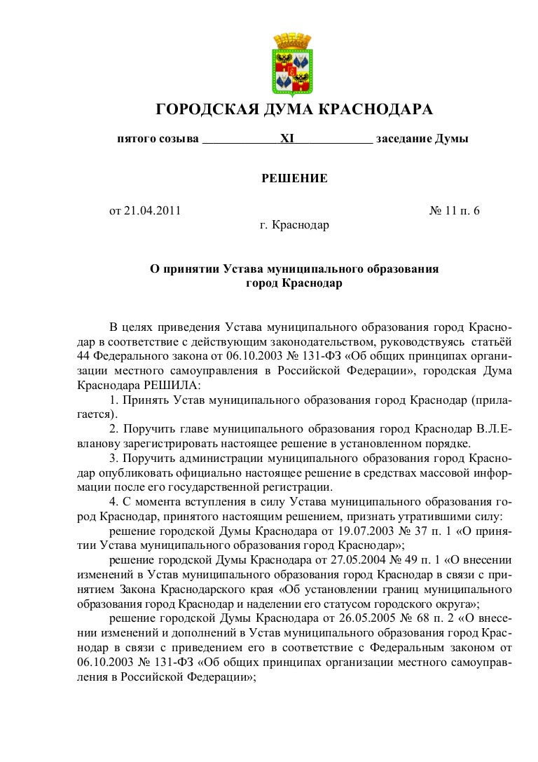 Устав города воронеж